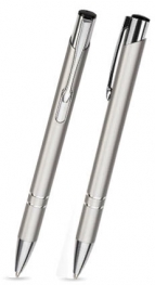 Pix metalic disponibil in 28 de culori Pix din metal Ø 10 mm  Material: Aluminiu Dimensiuni: 135 mm x 10 mm Greutate unitate brut: 0.0170 kg Intrare: albastru: Standard Slim Marcaj: gravura laser, Culoare gravura: Alb Pretul include personalizarea si TVA si este calculat pentru 100 bucati. 1 - 5 buc pixuri metalice    + 100% 6 - 10