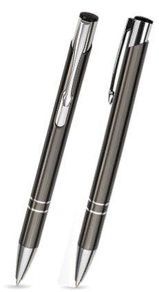 Pix metalic disponibil in 28 de culori Pix din metal Ø 10 mm  Material: Aluminiu Dimensiuni: 135 mm x 10 mm Greutate unitate brut: 0.0170 kg Intrare: albastru: Standard Slim Marcaj: gravura laser, Culoare gravura: Alb Pretul include personalizarea si TVA si este calculat pentru 100 bucati. 1 - 5 buc pixuri metalice    + 100% 6 - 10